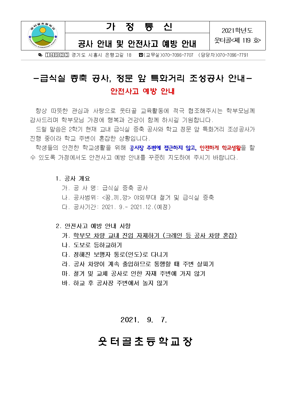 [ÀϹÝ] Á¦ 119È£ °ø»ç ¾È³» ¹× ¾ÈÀü»ç°í ¿¹¹æ ¾È³»
