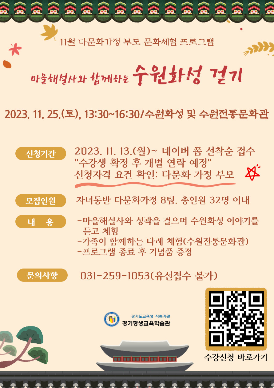 [ÀϹÝ] 11¿ù ´Ù¹®È­°¡Á¤ ºÎ¸ð ¹®È­Ã¼Çè ÇÁ·Î±×·¥ ¾È³»ÀÇ Ã·ºÎÀ̹ÌÁö 1